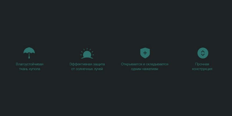 Ключевые элементы конструкции зонта выполнены из алюминия и стекловолокна, что, с одной стороны, придает им гибкости, но с другой стороны, увеличивает прочность. Зонт не погнется даже от сильных нагрузок. Детали устойчивы к истиранию и коррозии, а также имеют длительный срок службы.