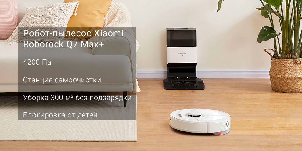 С Roborock Q7 Max+ можно быть уверенным в безопасности его перемещения по дому. Девайс получил целый набор разнообразных датчиков (падения, акселерометр и так далее). Он не попадет в ловушку и не врежется в стены.