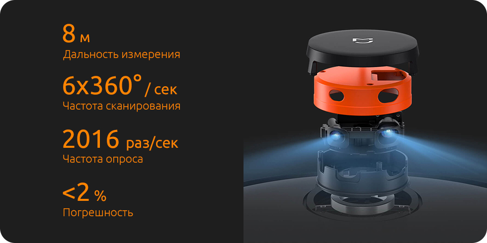 Новая система лазерной навигации LDS использует комплексные алгоритмы определения местоположения и кусочной аппроксимации. Чем быстрее вращается сенсор, тем выше точность, и тем дальше видит пылесос. В новом поколении карты составляются еще быстрее и точнее, а также увеличен диапазон сбора данных, чтобы пылесос быстрее обживался в новой обстановке.
