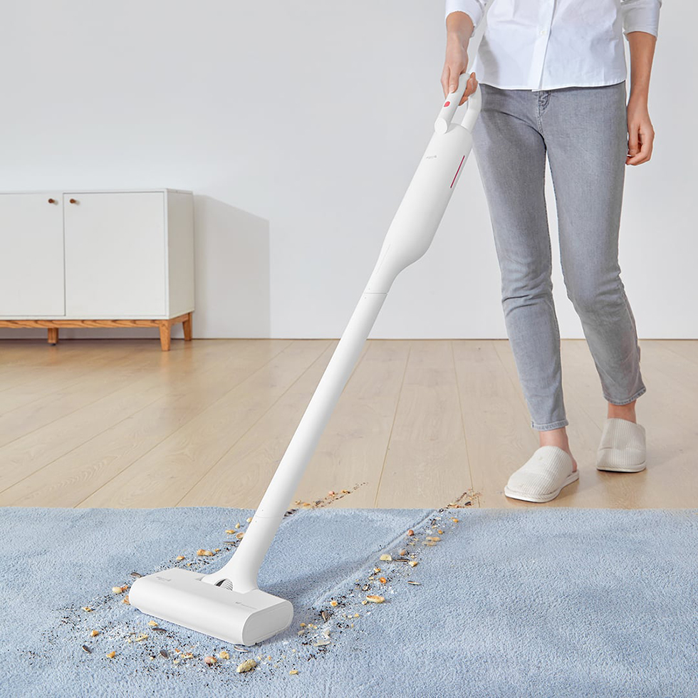 Эргономичная конструкция сверхлегкого пылесоса Deerma отлично подойдет для тщательной уборки даже в сложных условиях. Благодаря грамотному расположению центра тяжести он не утомляет руки даже при очистке потолков и верхушек мебели.