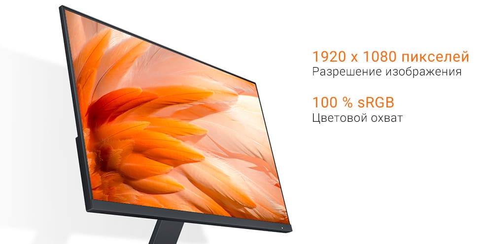 Монитор обладает разрешением изображения 1920 х 1080 пикселей. Каждая деталь картинки яркая и насыщенная. Поддерживается 100 % цветовой гаммы sRGB.