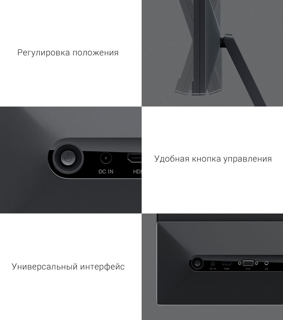Вы всегда можете выбрать наиболее удобный ракурс работы с монитором, так как он поддерживает свободную регулировку положения. Присутствует всего 1 кнопка управления, которую всегда легко найти. Для подключения экрана к другим устройствам он оснащен универсальным интерфейсом, который включает HDMI, VGA и другие порты.