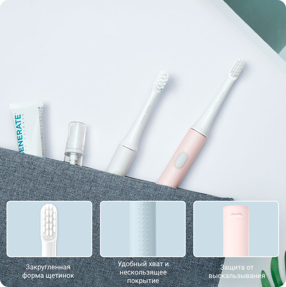 Ультра легкая зубная щетка для идеальной улыбки в любой ситуации. Вес зубной щетки Xiaomi Mijia Sonic Electric Toothbrush T100 всего 46 грамм. Фирменная щетина отличается повышенной плотностью для лучшей очистки. 2 режима очистки и прекрасная защита от воды.