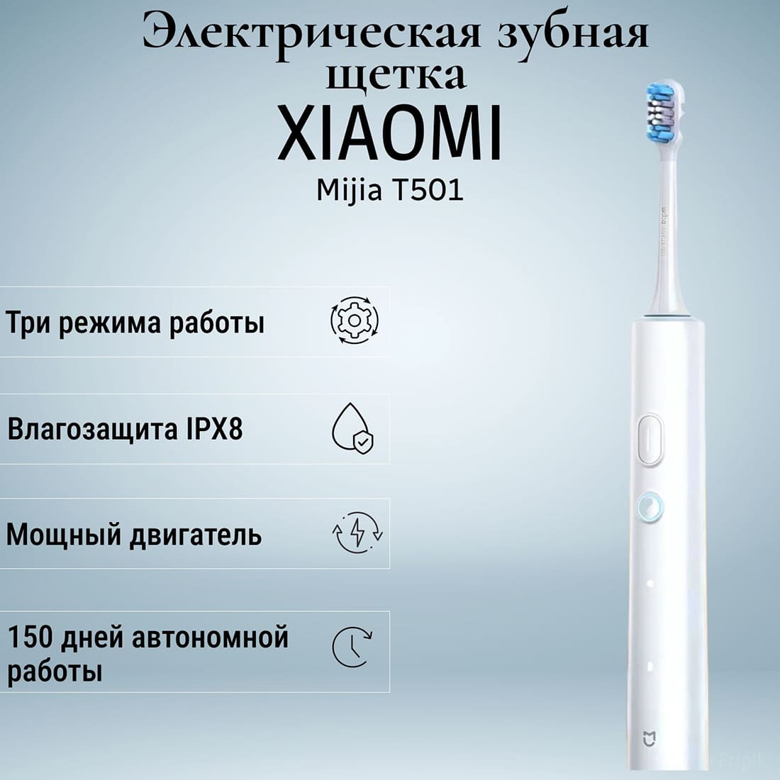 Электрическая зубная Xiaomi Mijia T501 с инновационными технологиями чистки, обеспечивает высокую эффективность очищения и сохранение здоровья полости рта.