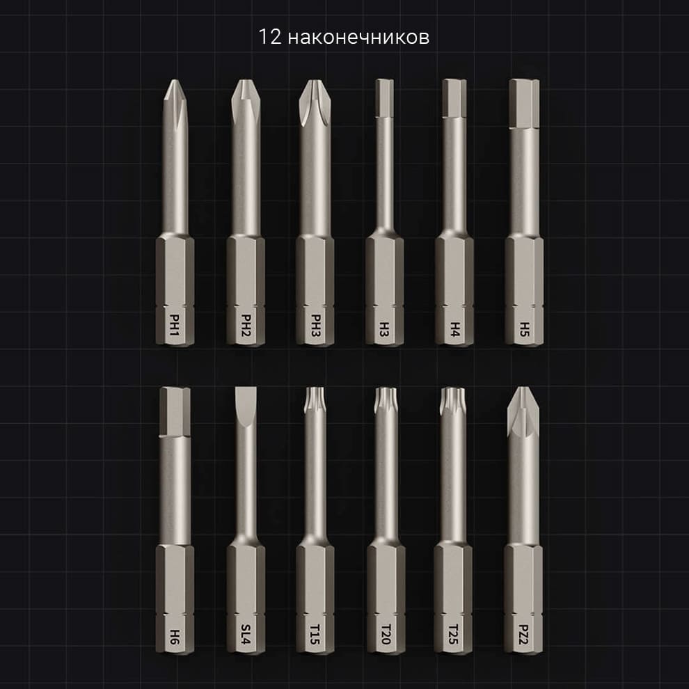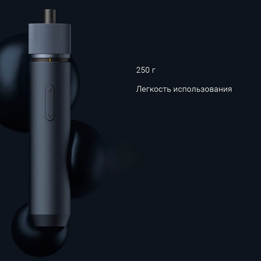 На корпусе гаджета находится кольцевой светодиод, который отключается автоматически. Он отлично помогает использовать устройство в условиях слабой освещенности. Отвертка заряжается через порт Type-C менее, чем за 150 минут.