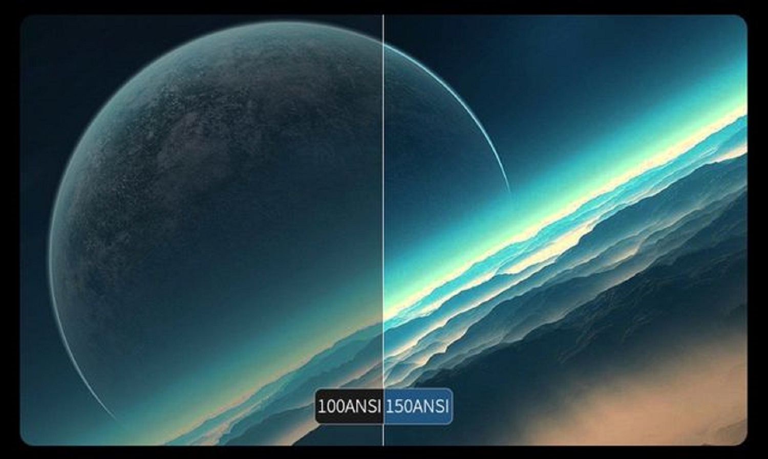 Соотношение сторон проекции – 1.35 :1, с расстояния 1,5 метров ее диагональ составляет 40 дюймов, при 2,5 метров 80 дюймов, а при большем удалении можно добиться диагонали до 120 дюймов.